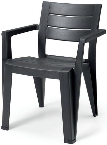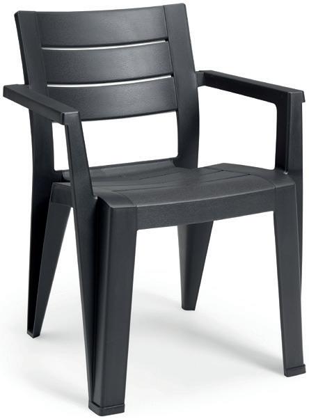 Asiento robusto y confortable. Apilable para un almacenamiento fácil y práctico. Resistente a los UV y a las inclemencias del tiempo. Fácil mantenimiento. 6,1 kg. 62x67x107 cm.