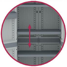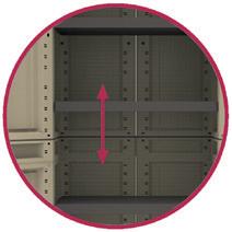 www.optimusferreteria.com 66 Ordenación exterior Estantes regulables Sistema modular Accesorios Sistema cierre Pie central Estabilidad superior 30Kg 30Kg 25Kg 25Kg 15Kg