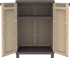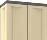 Armarios de resina, color arena con detalles en color marrón. Con patas. Posibilidad de cierre con candado.