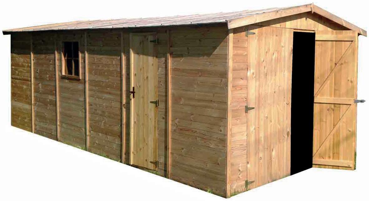 Garaje de madera mikhail ii 18 m2.600x 300 x 222/192 cm,pino panelada 19 mm grueso sin tratamiento.Puertas abatibles de 200*188 cm.Con ventanas y puerta de servicio lateral . 2295.00