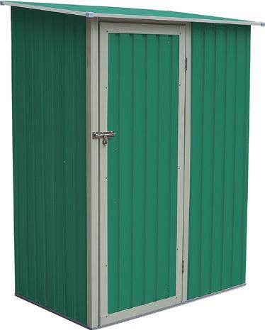 1700 L. Paneles de acero zincado de 0.25 mm de espesor. Marco de acero zincado de 0,6 - 0,8 mm. Techo a un agua con inclinación. Puerta con doble con bisagras y pestillo. 259.00