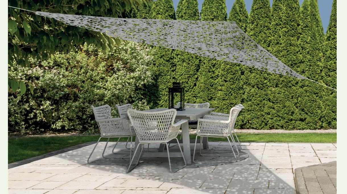 Gris oscuro, estructura en acero pintado de alta resistencia al exterior y textilene.