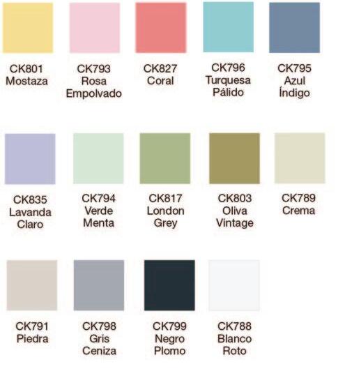 Pintura efecto tiza para decoración vintage. Acabado mate de aspecto sedoso y tacto aterciopelado. Perfecta para cualquier superficie incluyendo poliestireno expandido. Se puede lavar dentro de los primeros 15 minutos. Máxima cubrición y secado rápido.