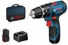 2 baterías de 2,0 Ah. Cargador 12V-20. Ø máx. tornillo: 7 mm. 20 posiciones de par de apriete + posición de taladro 30/13 Nm. Portabrocas de 10 mm. Luz integrada. Freno electrónico. Maletín de lona.