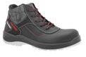 Piel velour roja hidro-repelente. Suela Flat Grip efecto neumático, con horma especial para conducir. Puntera composite y plantilla antiperforación de fibras cerámicas Zero. 100% libre de metal. Made in CE. Homologación CE EN 345 S3 ESD SRC.