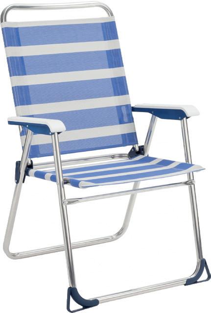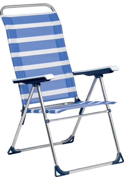 SILLA CAMA ALTA FIBRELINE ALUMINIO MULTIPOSICIÓN Respaldo bajo, con asa, pata trasera plegable. 65x92x65cm