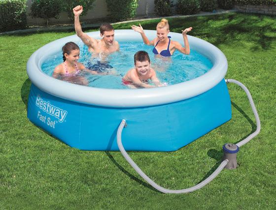 Piscina lista en apenas 10 minutos.Tapón de vaciado con conexión a una manguera de jardín. Fabricada en PVC triple capa.