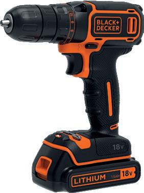 18V 30Nm, portabrocas 10mm, 0 - 650 rpm. Incluye 1 batería 1,5Ah de Litio, cargador y maletín.