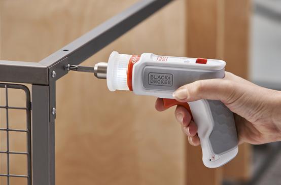 3,6V, 1,5Ah, 5,5Nm. con Carga rápida de Black+Decker es la herramienta perfecta para ayudarte en tareas de montaje de muebles prefabricados. Gracias a su tecnología de carga rápida, este Atornillador esta listo con solo 15 minutos de carga ofreciendo la potencia suficiente para apretar hasta 100 tornillos.