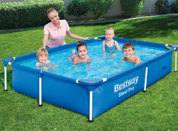 122x122x30 cm. Capacidad de 342L. Para 1 o 2 niños a partir de 2 años. Estructura metálica de facil montaje.