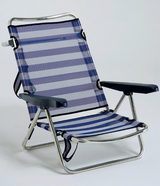 Reclinable. Respaldo y reposabrazos son ergonomicos. Incluye bolsa de transporte. (96x72x15 cm). Carga maxima: 130 Kg.