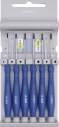 461-6-B. Varilla de acero cromado de vanadio. Acabado cromado con puntas pavonadas. 4 planas: 1,6 - 2 - 3 - 5,5 mm + 2 philips; PHOO - PHO.