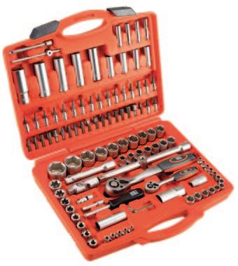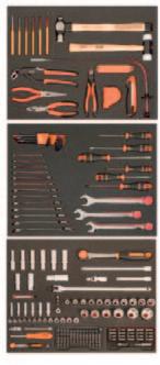6 cajones en chapa de acero de 0,8 mm. Con 162 herramientas. Soporta una carga máx. de 250 kg. 2 ruedas fijas y 2 giratorias con freno. Cierre en todos los cajones. Medidas: 68x46x102 cm.