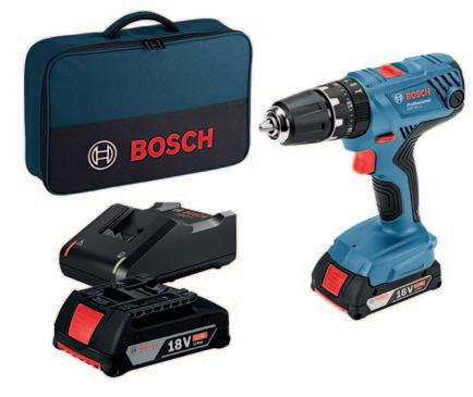 18V. 2 velocidades (0-480/1.800 rpm). 55/21 Nm. 20+1. Portabrocas de 13 mm. Luz LED. 1,6 Kg. 2 baterías de 2,0 Ah. Cargador GAX 18V-30. Maletín de lona.
