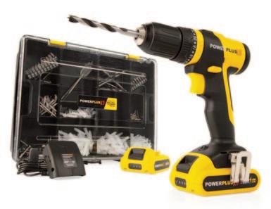 Batería 20 V y cargador. Portabrocas 13 mm. 0-400/0-1300 min-1. 2 velocidades. Velocidad variable. 30 Nm. 22+1+1 posiciones de torque. Incluye maletín con 362 accesorios y 2 baterías 1,5 Ah. 95€ + IVA 114,95€