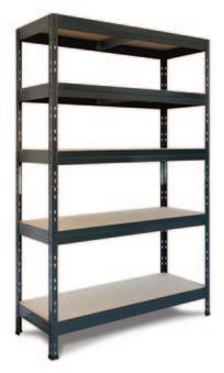Fácil montaje y alta resistencia, 300 Kg por nivel, bandeja de madera aglomerada y estructura en acero pintado color gris antracita anticorrosión.