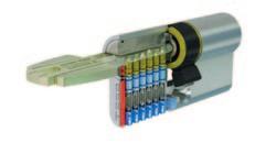 Doble embrague. 5 llaves patentadas e incopiables. Sistema de protección antibumping, anti-rotura, antiextracción y antiganzúa. Leva larga. Latonado. Cilindro doble europerfil TK100.