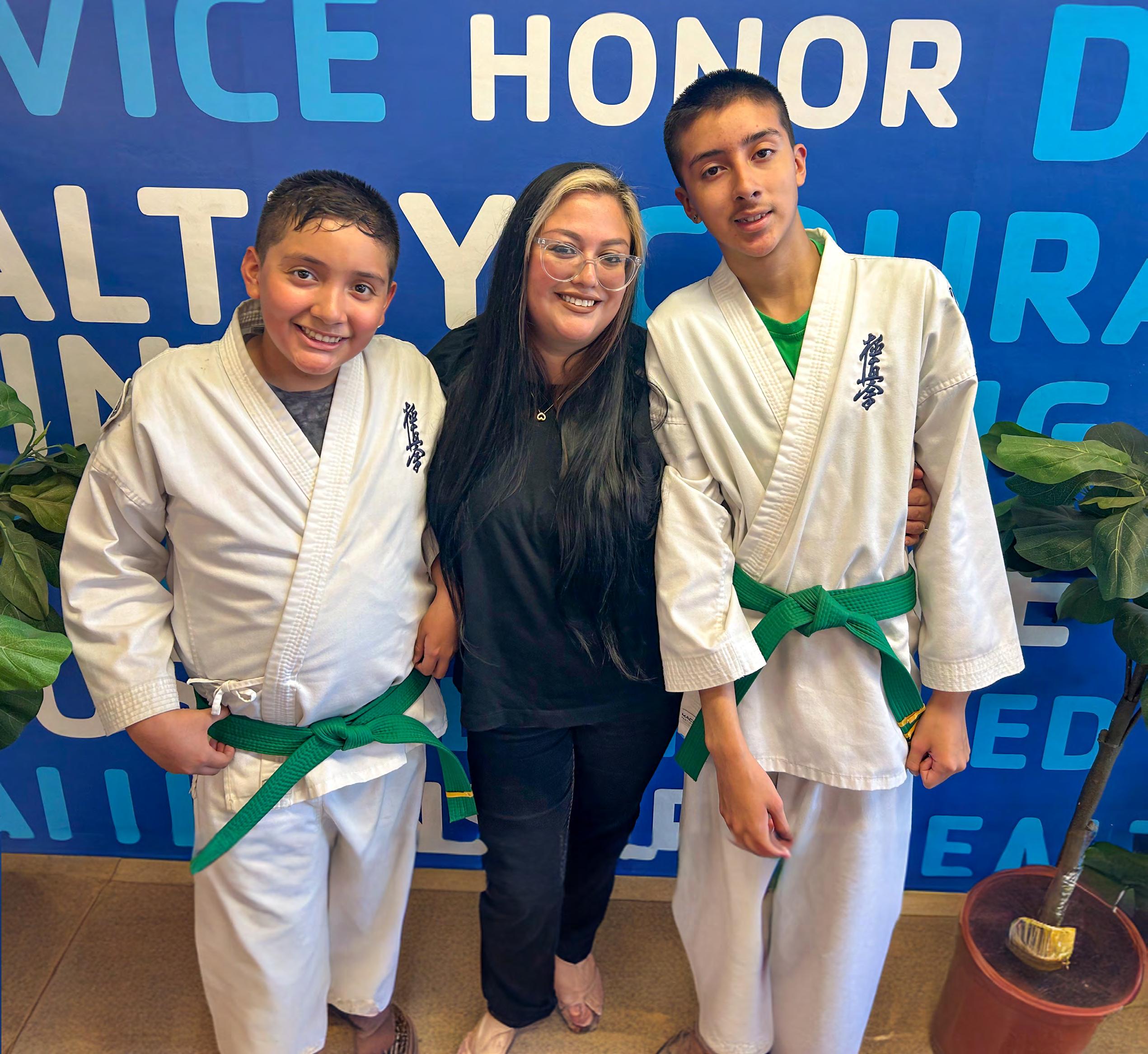 Financial aid from the YMCA has provided crucial support for Maria’s family, especially during a difficult period when her husband was unemployed due to the pandemic. “I didn’t even know the Y had financial aid until someone at the front desk told me to apply for it,” Maria says. This assistance enabled Maria to enroll her children in Karate classes, an opportunity that has not only kept them active and helped them lose weight but has also resulted in their outstanding performance, with both boys achieving the highest rank of green belts in their class. “Now, my kids can be more active and stay away from video games for a little bit,” She adds with a little laugh.