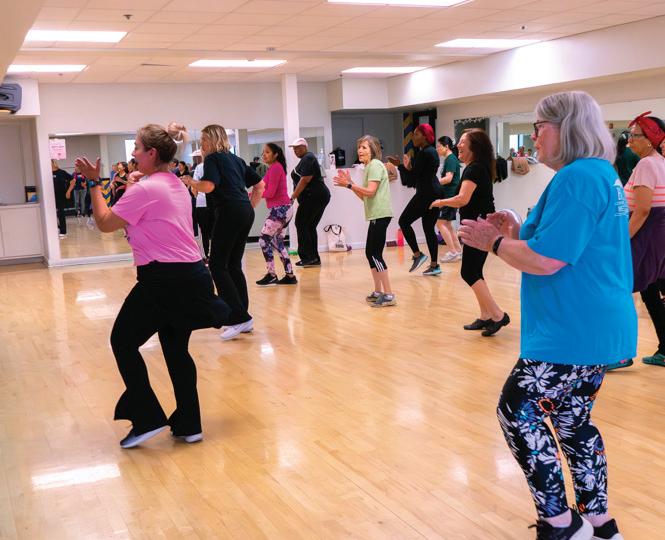 A beginning exercise class with a focus on easy-tofollow exercises and stretching.