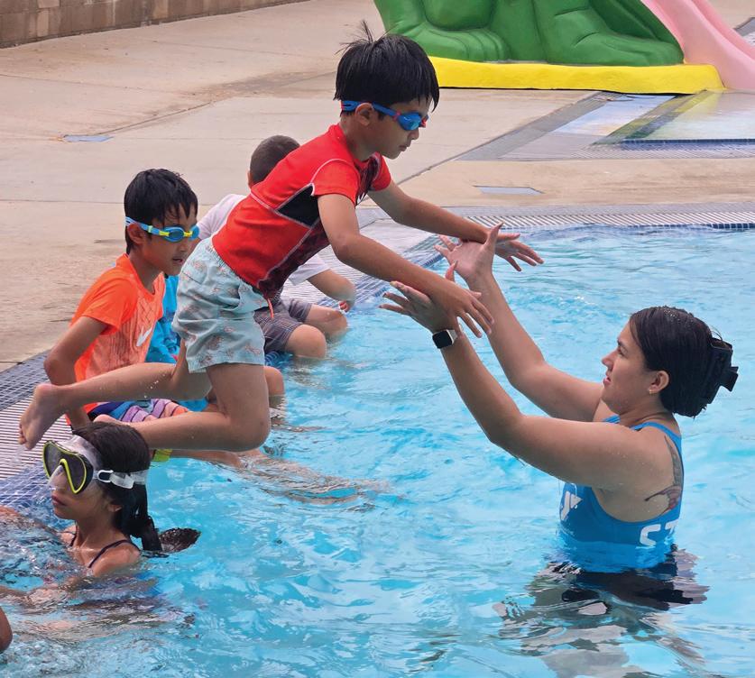 Our Preschool Swim Program helps children build water confidence through exploration and assisted self-rescue skills. They progress to independent movements, basic stroke techniques in front and back crawl, and essential water safety skills like treading and elementary backstroke.