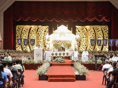 Finally, on October 3, 2024, the Marian Missionaries of the Holy Cross and the Youth for Mary and Christ, after the onslaught of the pandemic, held the Grand Rosary Mass Rally for Peace at the University of St. La Salle Coliseum, Bacolod City, with the theme, “Maria, Modelo sa Pagpangamuyo, Kaupod sa Pagkabalaan ” It was attended by more than 5,000 participants, including students, educators, members of religious congregations, and YMC members. The program began with a moodsetting led by the MMHC priests The participants then sang "Immaculate Mother" and waved their flaglets as the Blessed Virgin Mary was brought onto the stage Rev Fr Julius Ma Dayandante, MMHC, gave the inspirational talk, stressing the importance of following Mary's example of prayer, sacrifice, and service The praying of the Holy Rosary and the coronation rites followed Mother Mary was honored with the imposition of the crown, rosary, leis, and flowers offered to her as gifts from different schools and organizations To culminate the activity, the Holy Sacrifice of the Mass was celebrated by Most Rev. Patricio Buzon, Bishop of Bacolod, together with MMHC priests