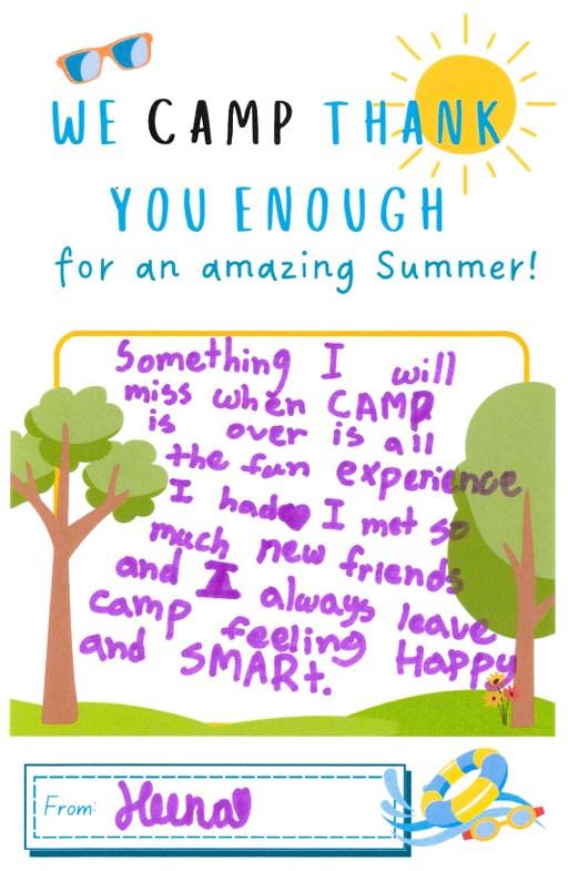 The time, treasure, and talent you share with us makes Camp possible for kids. Check out a few of their amazing thank you notes (below).