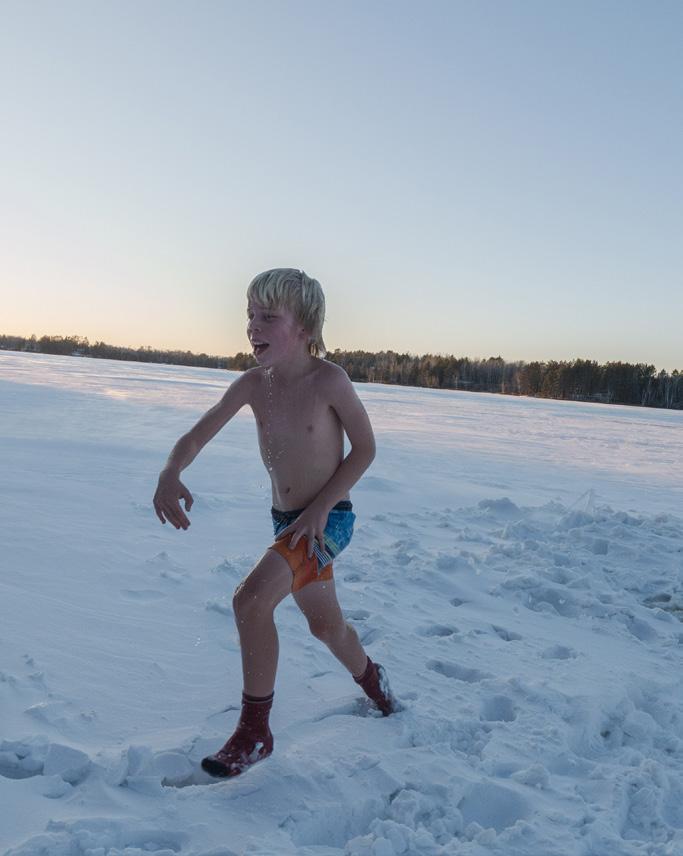 One of his favorite times to sauna is in the winter. For those who haven’t experienced winter sauna-ing, there are a few things to know: you need to wear wool socks so your feet don’t stick to the ice. To cool down you can either roll around in the snow or you can jump into a hole in the ice, and despite