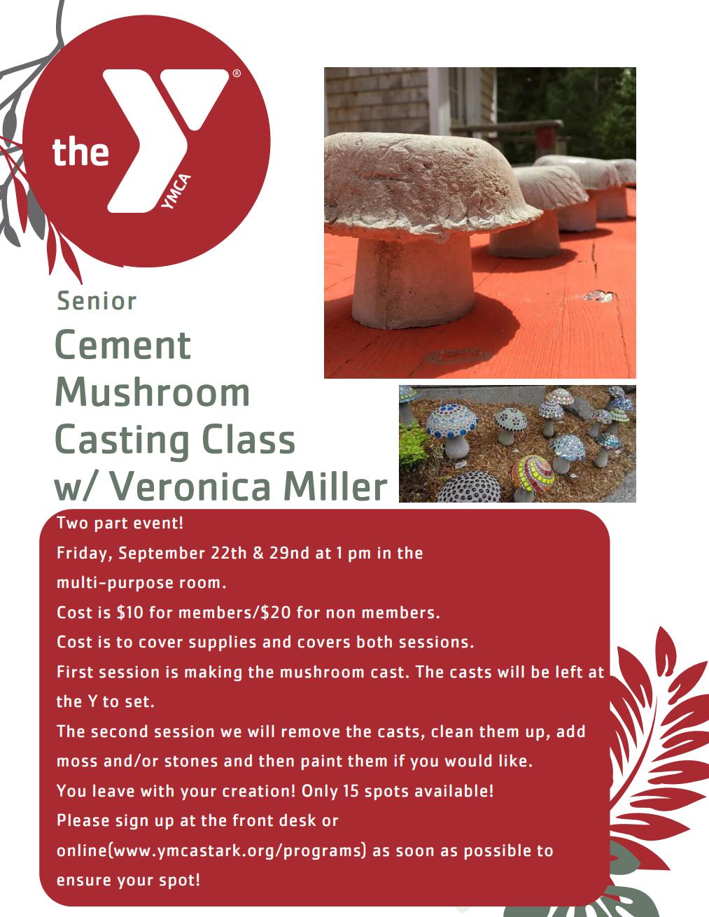 This event was so much fun! There was a bit of a learning curve for Vee and myself, because she never led a class this large and I’ve never done anything like it before. I was told that it was a YMCA first to be mixing cement in the Y. I may have made my bosses super nervous bringing in wheelbarrows full of cement, but Praise Be! Everything turned out great! If you missed out on the fun, we will be doing a cement mushroom class September 22nd. See the flyer in this newsletter for more information.