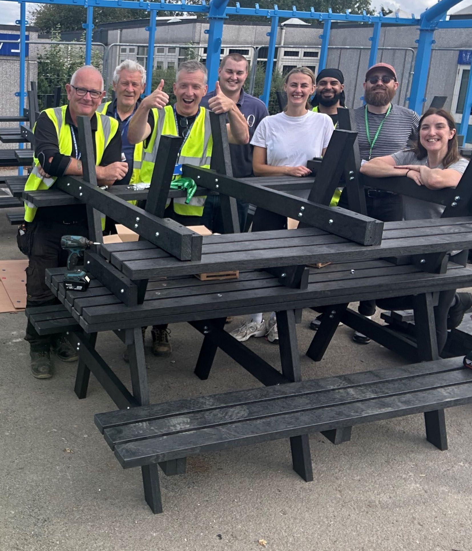 Volunteered at South Wolds Academy to help assemble picnic benches made from 100% recycled plastic as part of a larger kitchen refurbishment project.