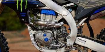 Con su toma de aire delantera de alta eficiencia, este motor 4 tiempos de 250 cc de altas prestaciones es uno de los diseños tecnológicamente más avanzados de su categoría. Su formidable historial incluye numerosas victorias en carreras de MX2, así como el Campeonato del Mundo de MX2 2021 y una serie de títulos de 250 SX, por lo que puedes estar seguro de que el motor de culata invertida de la YZ250F Monster Energy Yamaha Racing Edition ofrece todo el rendimiento, facilidad de uso y durabilidad que necesitas para ganar.