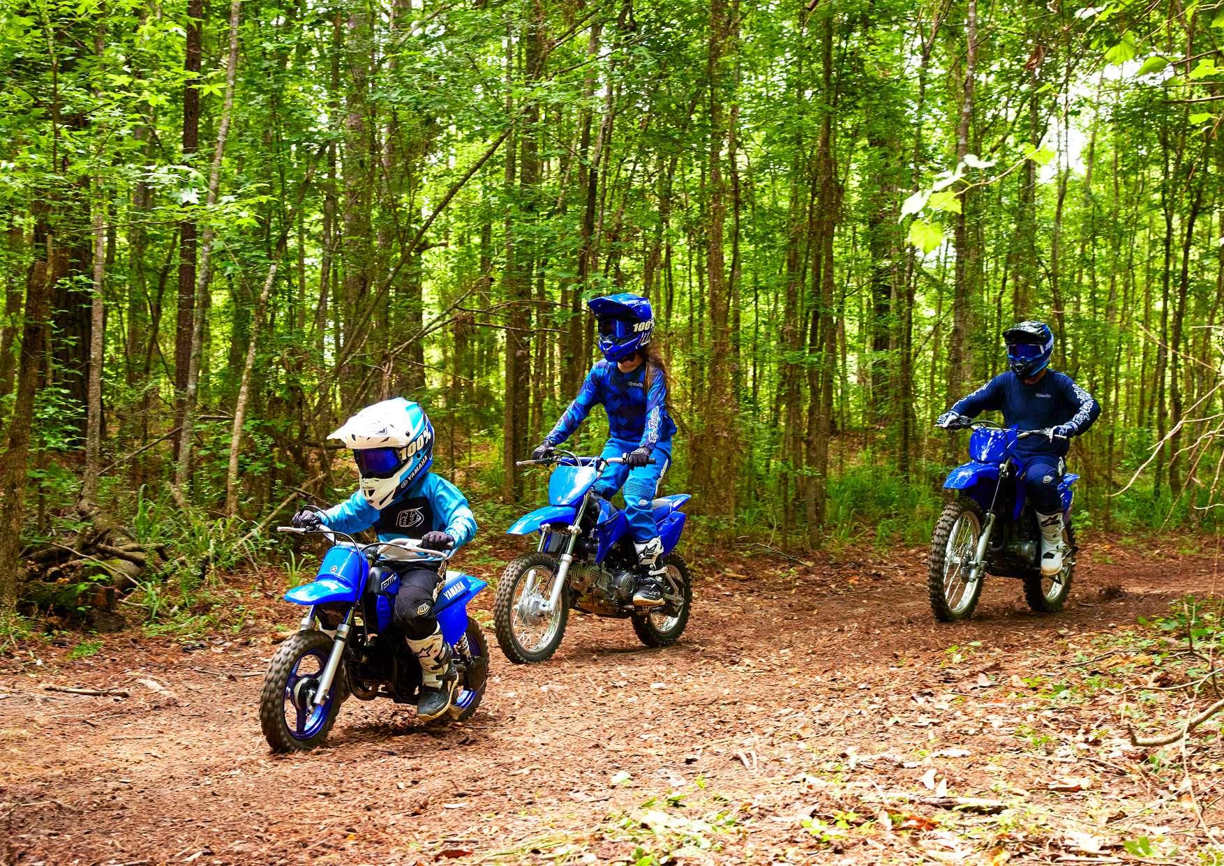 La TT-R125, la TT-R110 y la TT-R50 de 4 tiempos representan la gama más accesible de motos offroad para pilotos jóvenes y no tan jóvenes. Y la legendaria PW50 de 2 tiempos es la perfecta puerta de entrada al mundo del pilotaje offroad para los más pequeños.