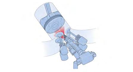 La inyección de combustible a alta presión directamente en la cámara de combustión mejora enormemente la atomización y aumenta la eficacia de la quema de combustible para una máxima potencia y eficiencia.