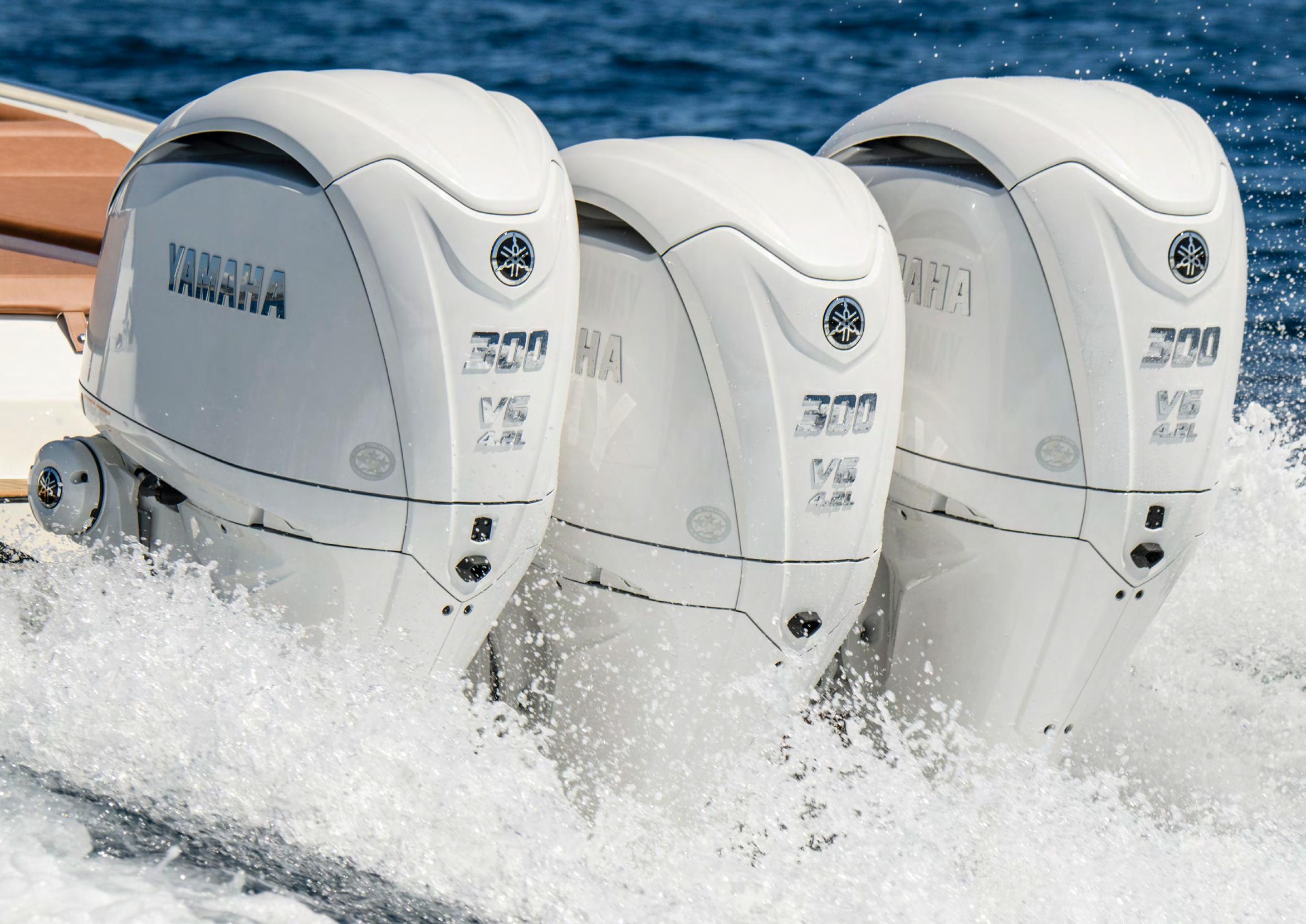 Con los motores V6 de 300hp, ha llegado una serie de nuevas características exclusivas de Yamaha, que incluyen la dirección eléctrica digital (DES), la función TotalTilt y el escape de marcha atrás con mejora de empuje (TERE), que ofrecen características aún más avanzadas para estos fuerabordas prémium.