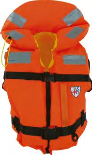 Chaqueta en la categoría de 100 Newton. Capacidad de mantener la cabeza fuera del agua. Flotabilidad: espuma de polietileno. Rodillo grande alrededor cuello con mayor flotabilidad proporcionando comodidad agregada y mejorando el soporte para la cabeza. Visibilidad: Color naranja brillante y cintas retro reflectantes. Panel frontal de la flotación se divide en 2 para un mayor confort, pieza de entrepierna ajustable. Cierre: correa de cintura ajustable con clip de plástico, dobladillo ajustable con lazo, cierre correa de cuello. Asidero y lazo en la parte trasera para conectar una línea de seguridad.