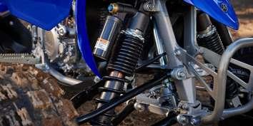 La suspensión de largo recorrido ayuda a mantener las ruedas en contacto con el suelo, incluso sobre terrenos ondulados. La suspensión delantera independiente impide que el movimiento de una rueda se vea afectado por la otra. Esto mejora la conducción, puesto que permite al YFM110R desplazarse sobre terreno irregular con más precisión y suavidad para mayor confort y control.
