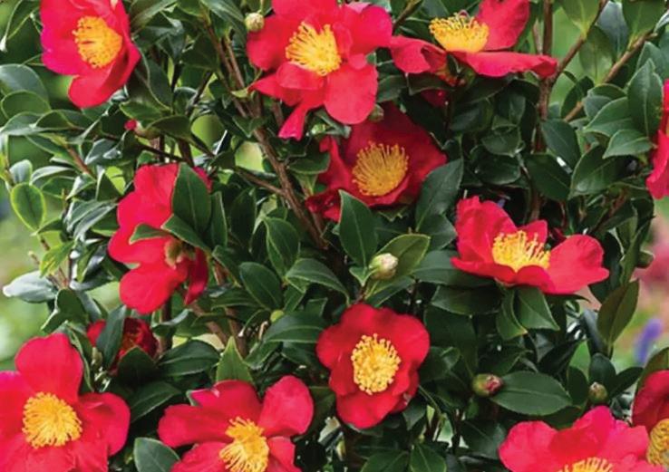 Camellia ‘Winter’s Toughie’ Even winter’s icy grip won’t stop ‘Winter’s Toughie’ from flowering and putting on a stunning show. Its very name is an indication of how hardy it is, flowering from November through to February. This vigorous evergreen, with rich, glossy leaves, pink semi-double blooms, and yellow stamen centres, is an absolute stunner – a welcome burst of colour in any winter garden. It grows happily in any partially shaded border or can be trained against a wall, thriving in neutral to acid soil. Camellia ‘Yuletide’ This stunning Camellia really has the wow factor, producing masses of vibrant red flowers. Each bright crimson bloom is crowned with golden stamens, creating a truly striking display. Naturally coming into flower a week or two before the Winter Solstice, it will continue blooming well into the new year, providing colour when everywhere else is sparse.