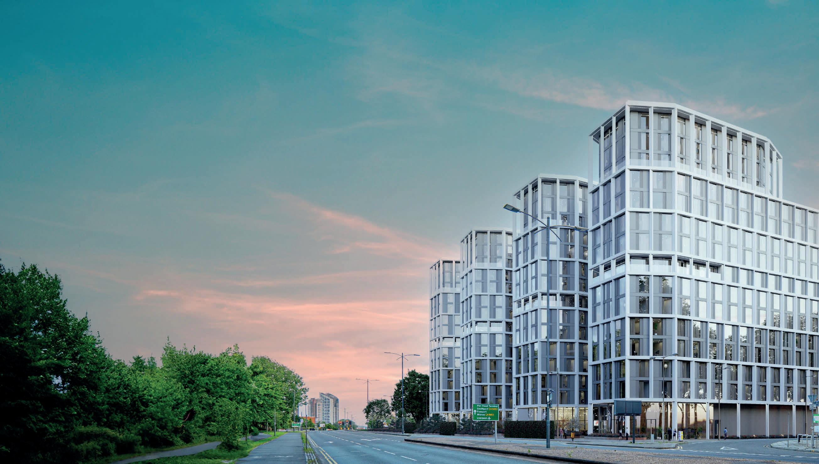 Large scale 1 & 2 bed apartments of 1050 to 1700 SqFt, plus full width terraces with extensive city skyline, Bramley Moore or Mersey views.
