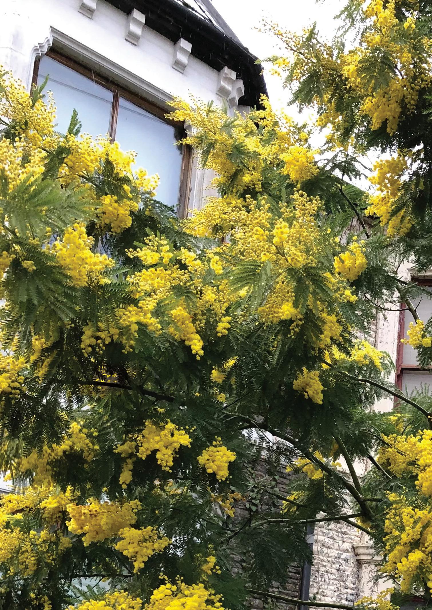 Acacia dealbata ‘Mimosa’ is one such beauty – a truly breathtaking tree, and you can see why I was stopped in my tracks recently when I came across this magnificent specimen in full bloom. So tropical-looking, flowering from early January to March, its tiny frothy flowers remind me of sherbet lemon pips – sweets I used to eat as a child – with the same vibrant yellow. And if that wasn’t enough, the blossoms are heavenly scented too.