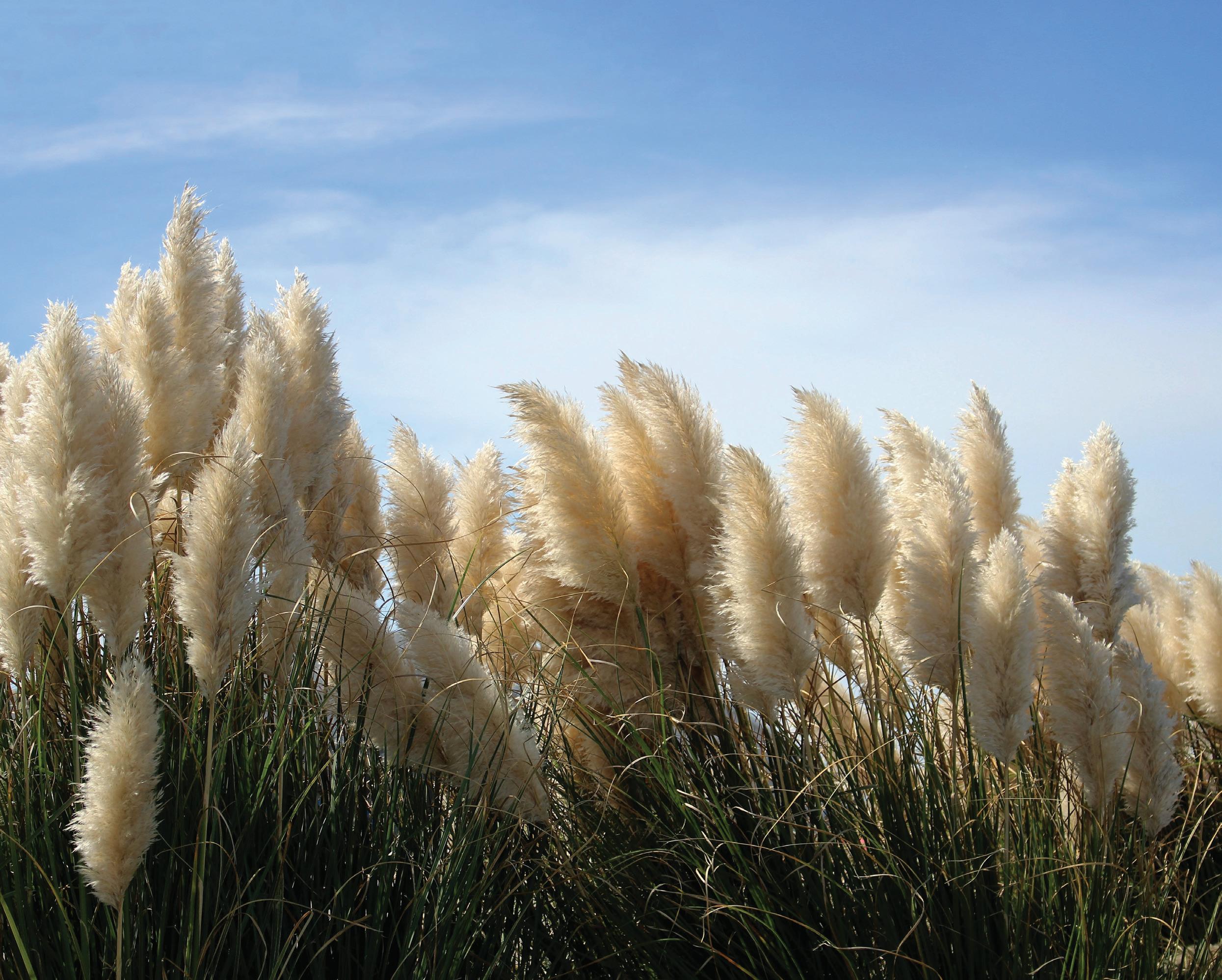 Cortaderia selloana ‘Pampas grass’ has to be top of the charts and if harking back to my ’70s heyday, I remember no discerning dedicated follower of fashion would be without this in their front garden. Although Pampas grass did go out of fashion and sales declined when smutty rumours circulated about the plant, an amusing yet unfortunate myth, but no reason in my opinion to deter anyone from planting this majestic grass. So, seeing a resurgence of its popularity in the last few years is great and well deserved. Easy to grow and preferring a sunny spot, this grass is native to the Pampas region of South America, hence its name. There are several varieties to choose from but be aware that some can grow to well over 10ft tall. As always, it’s up to you to decide which suits your requirements best. I grow several species including the dwarf variety Cortaderia selloana ‘Pumila’. Its beautiful soft white plumes sit above its small mound of grassy foliage, still providing that distinctive impact but only growing between 4-6ft in height. Mature clumps need to be kept under control and cut back hard annually in early spring. Wear gloves doing this job as the fine strand like leaves have sharp serrated edges. Some gardeners actually set light to the pampas grass base, a quick method of dealing with a large overgrown plant which is often done in parks. This does no harm to the plant, but I wouldn’t recommended it and personally prefer a pair of shears to do the job, its much safer too. The Pumila’s distinctive cut and dried feathery plumes are in high demand from interior designers and trendy hair salons alike. Who would have thought? A tip if you are going cut pampas plumes to use in floral arrangements is to hang them upside down to dry then spray lightly with hair spray to prevent the tiny fluffy seeds getting everywhere.