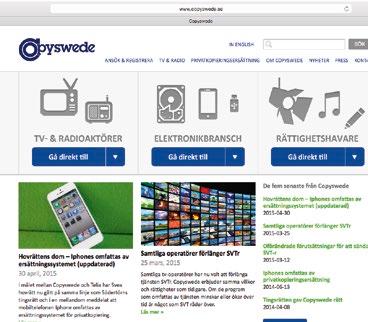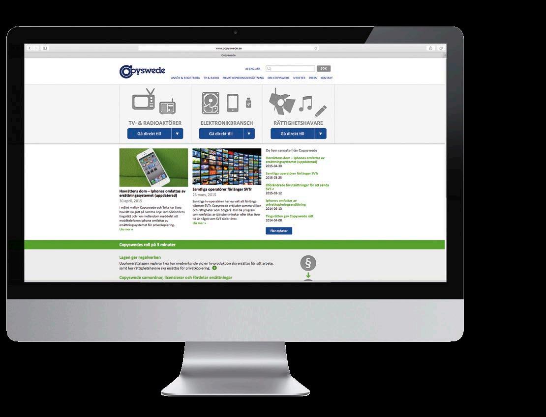 For news and more information about our organisation, visit our website copyswede.se. The website also contains forms and web-based tools for reporting TV use or data linked to the private copying levy.
