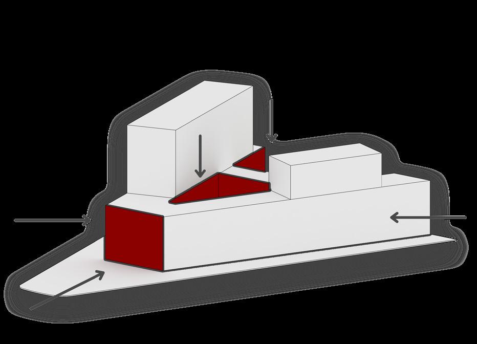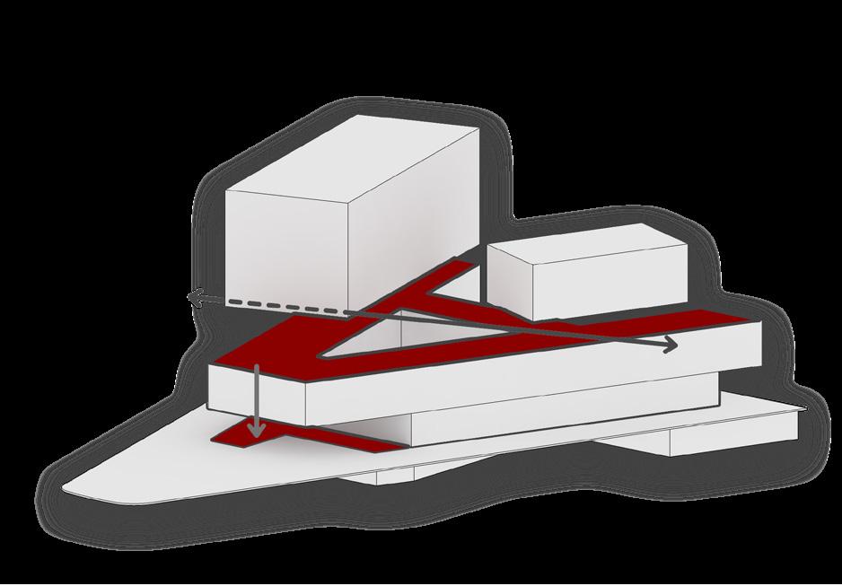 O projeto tem como proposta uma arquitetura fluida, que proporcione segurança ao mesmo tempo que busca um contato entre as usuárias com a natureza e uma ambição pela normalidade de suas antigas rotinas, por ser um momento delicado e muito singular para cada uma. O edifício se desenvolve em um pavimento térreo (figura 13), a partir de uma planta retangular, foi criado passagens transversais entre a periferia da forma, onde está localizado grande parte do programa, através dessas diagonais foi possível criar diversos pátios diferentes, em sua maioria com vegetação, criando um dinamismo entre os cheios e vazios, proporcionando diversas rotas para chegar ao mesmo destino, promovendo uma noção de vida cotidiana em uma cidade, onde o caminhar ocasiona encontros não planejados e diversas sensações em cada trecho, o que evita o sentimento de isolamento e não pertencimento, tanto das mulheres como dos filhos.