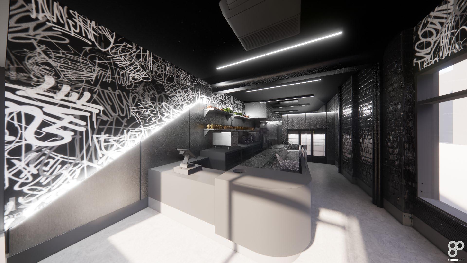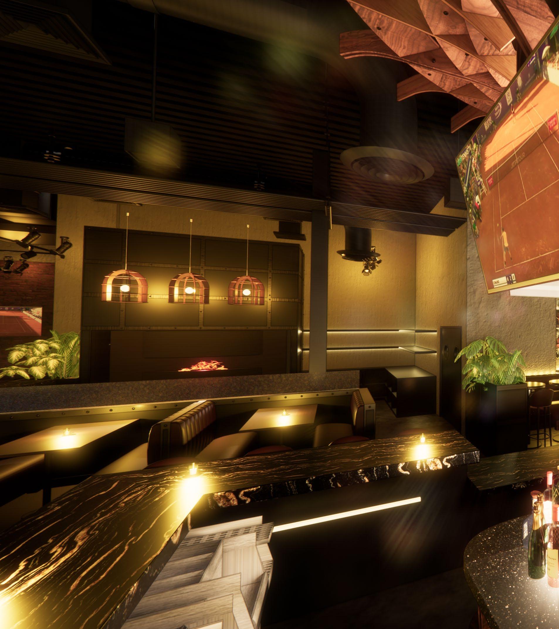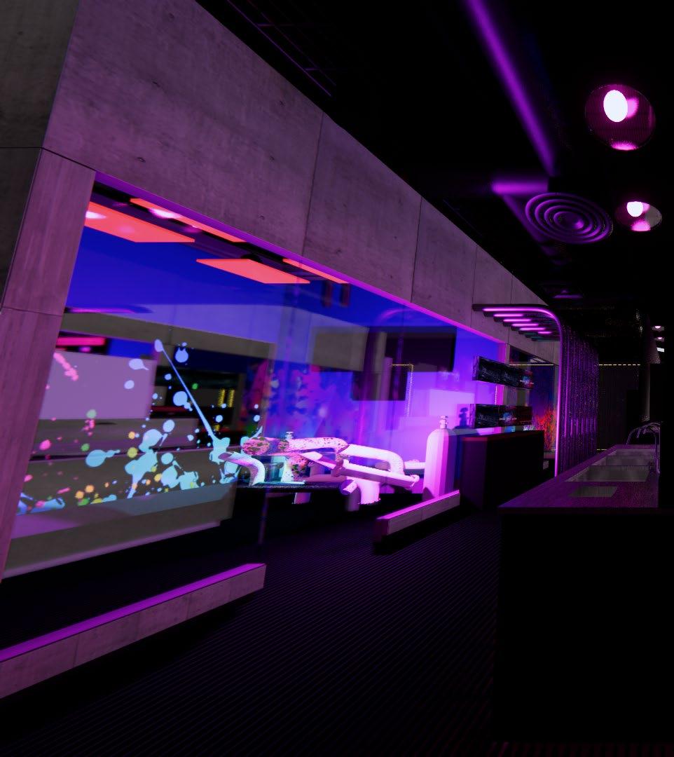 My role is to develop the schematic design with both the design team and the game team, conduct weekly presentations, of the entire space for design improvement and future commercial use for the client, and draft construction documents