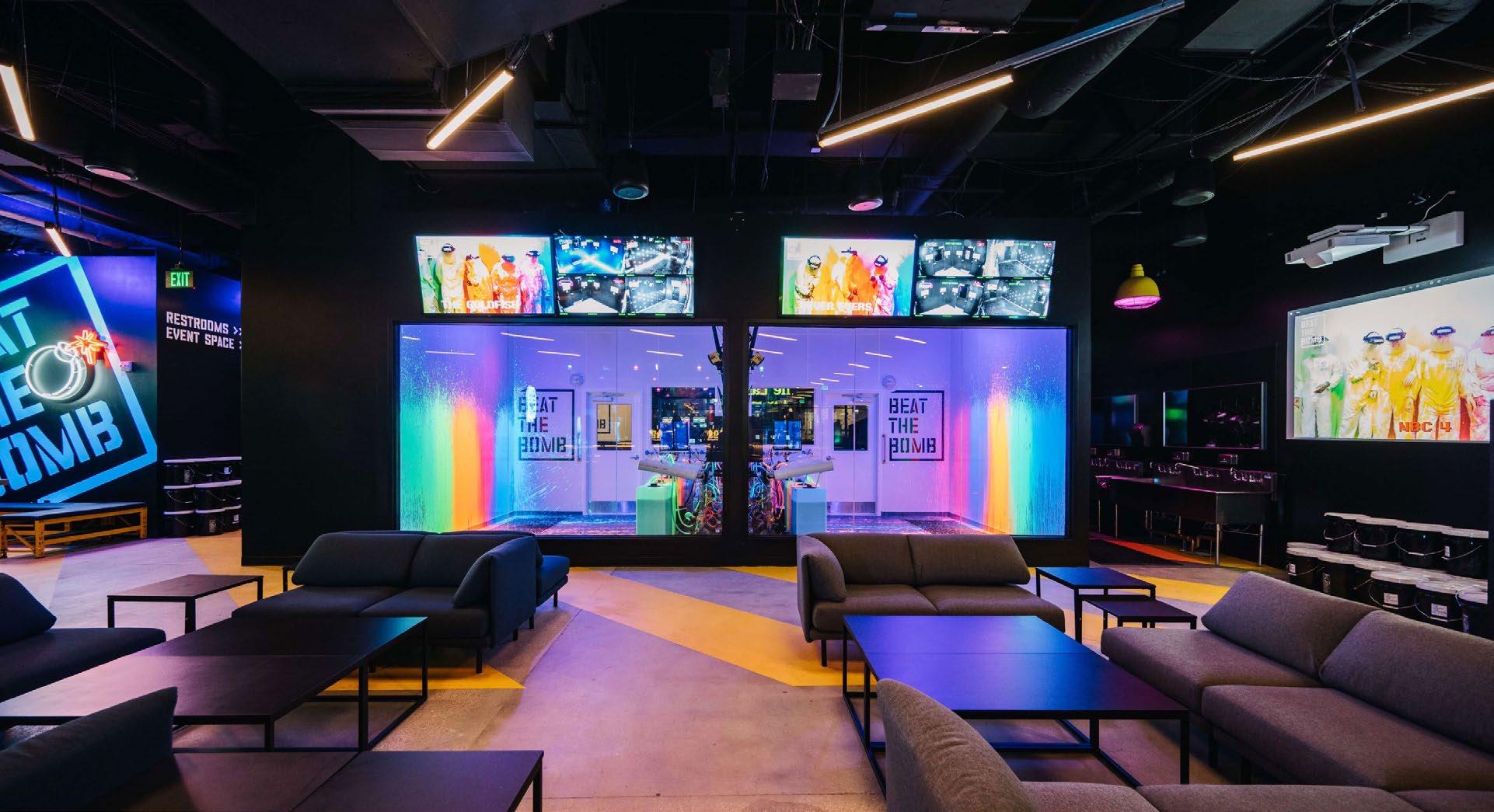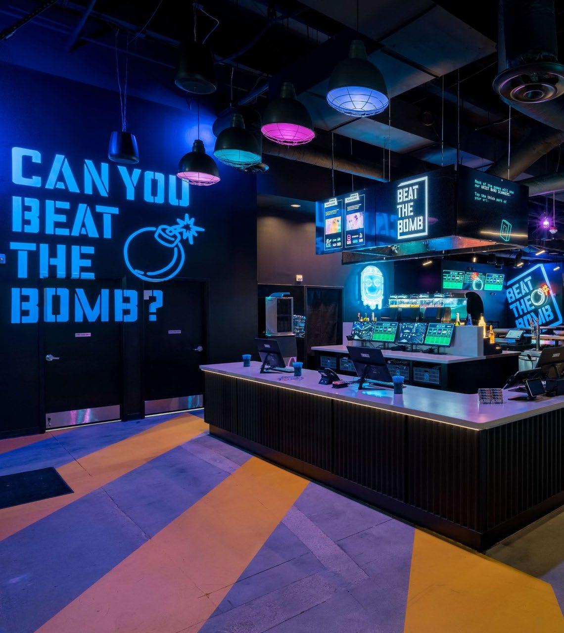 Beat the Bomb is an immersive arcade concept where players suit up and advance through a series of 5 hi-tech video cumulate time, strategically utilizing it to disarm a giant bomb in the final room; failure results in being engulfed by the bays are available for players to engage in mini-games while indulging in foods and drinks. The seamless collaboration developers, and technicians ensures players enjoy a fully immersive real-life video game encounter.