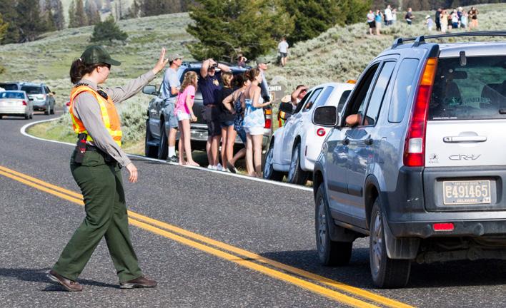 Yellowstone Forever funding provides support for seasonal park rangers and volunteers who educate visitors about wildlife and safety at roadside wildlife jams, at overlooks, along self-guiding trails, and in developed areas. These seasonal park rangers are imperative to help reduce injuries, prevent fatalities, and maintain wildlife in their natural habitat as well as add to visitors’ positive experience through engagement with people exploring the park.