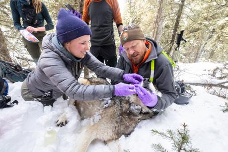 This ongoing project is world-renowned and crucial to understanding the role of wolf packs in Yellowstone’s ecosystem. Year-round field research allows biologists to collect data on wolf population dynamics, predator-prey interactions, social behavior, genetics, disease, multi-carnivore competition, ecosystem impacts, and humanwolf relationships. New advances in noninvasive monitoring techniques, including bioacoustics and advanced remote cameras, continue to expand opportunities to study the complex lives of the park’s wolf packs. Over time, this work has culminated in a leading wildlife program at the forefront of carnivore science and conservation.