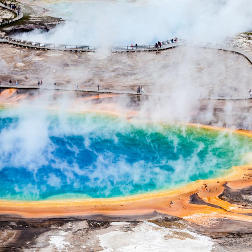 As visitors explore Yellowstone, they may not realize they are traveling on one of the world’s largest active volcanoes—an astonishing 30 by 45 miles in size. Heat from this supervolcano forms the most dynamic geothermal system on Earth with more than 10,000 hydrothermal features. Hot springs, gushing geysers (more than 500), bubbling mud pots, steam vents, and other geological wonders found within Yellowstone’s boundaries played a key role in the creation of the world’s first national park.