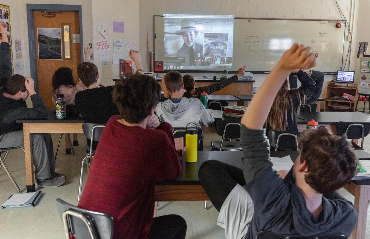 In addition to taking Yellowstone education to community events and schools in the region, education staff also conduct distance learning programs using video conference technology to share Yellowstone, science and civics education, careers,