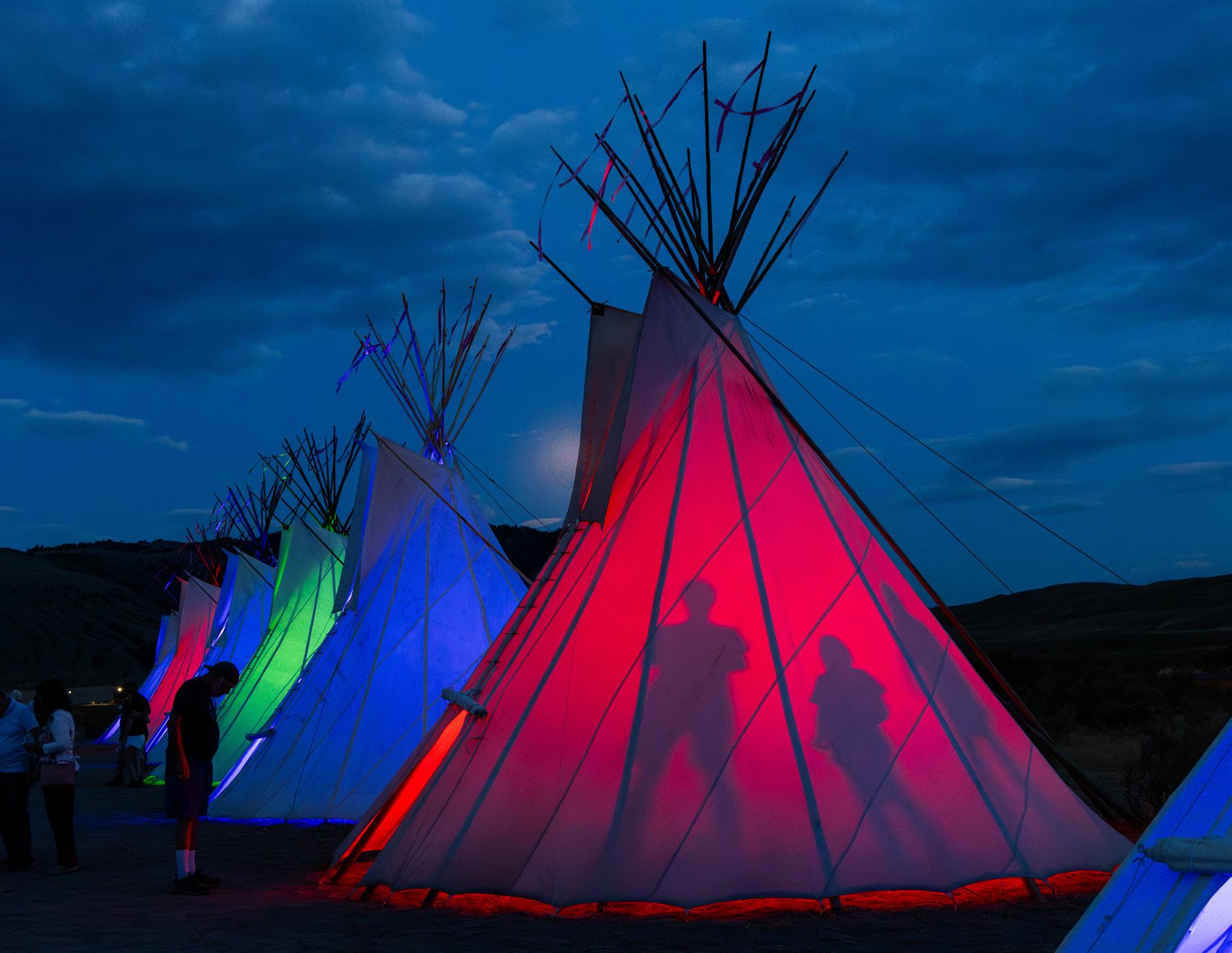 In partnership with the Rocky Mountain Tribal Leaders Council and the Pretty Shield Foundation, illuminated teepees are lit each evening, creating a gathering place where songs, stories, and personal histories are shared.