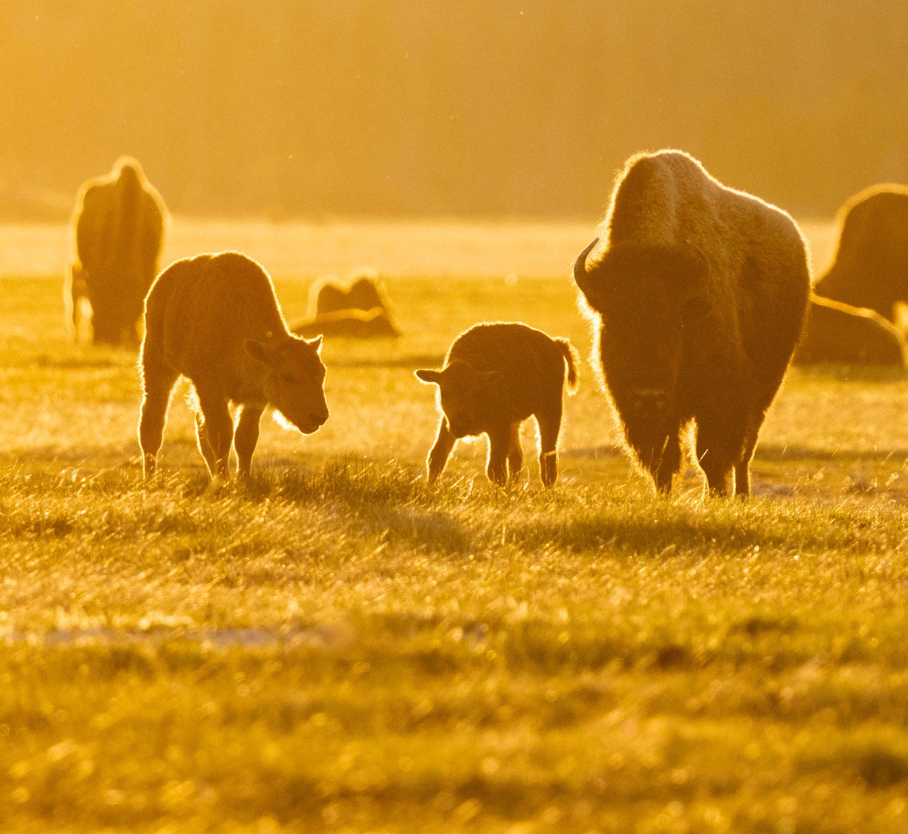 Few sights inspire Yellowstone visitors more than a newborn, red-hued bison calf pressed against the monumental frame of its mother. Minutes after being born, this young calf can stand, walk, and before long, is frolicking in green valleys. Their survival is dependent on the protection of the herd, who work together to fend off predators, ford rivers, forage, and thrive on Yellowstone’s immense landscapes.