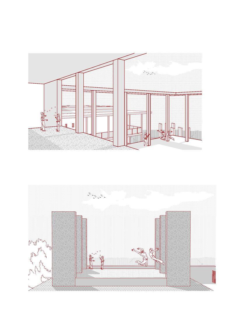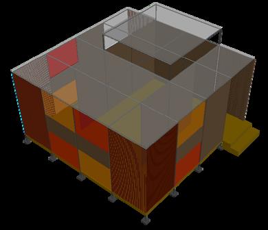 posibles configuraciones del pabellón en planta 01 elevaciónde acceso modelo 3D 03 02 02 03